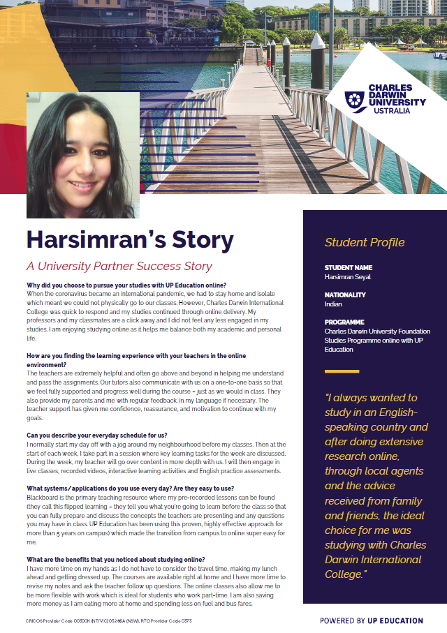 Charles Darwin University International College Testimonial – Harsimran