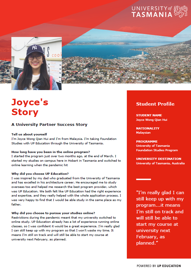 University of Tasmania International Pathway College Testimonial – Joyce