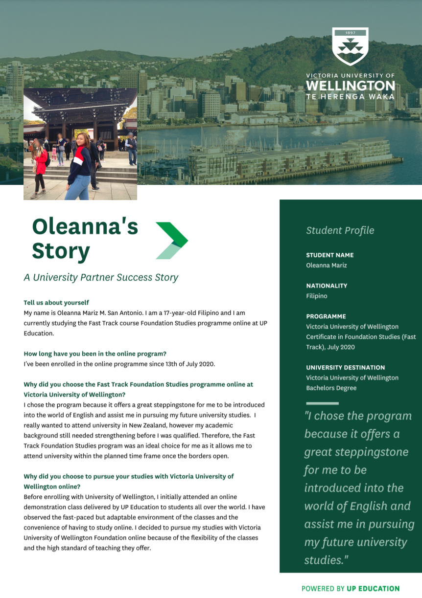 Victoria University of Wellington Foundation Studies Programme Testimonial – Oleanna Mariz