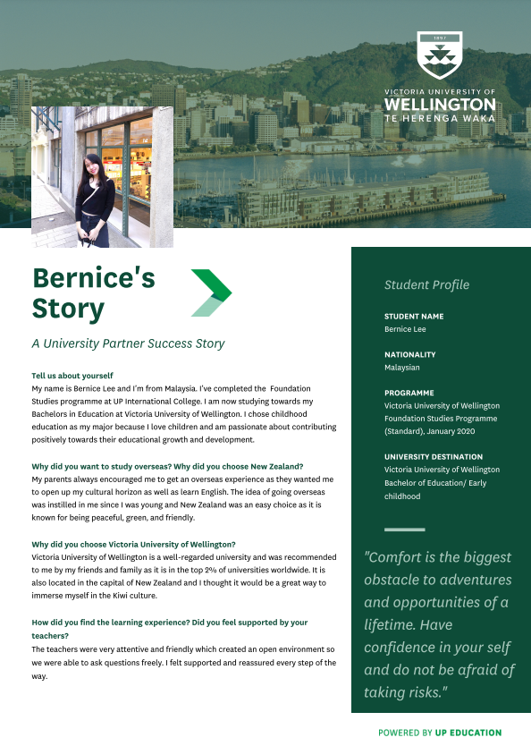 Victoria University of Wellington Foundation Studies Programme – Bernice Lee
