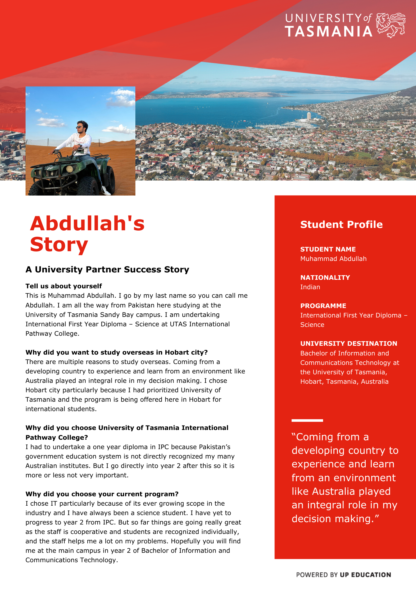 University of Tasmania International Pathway College Testimonial – Abdullah
