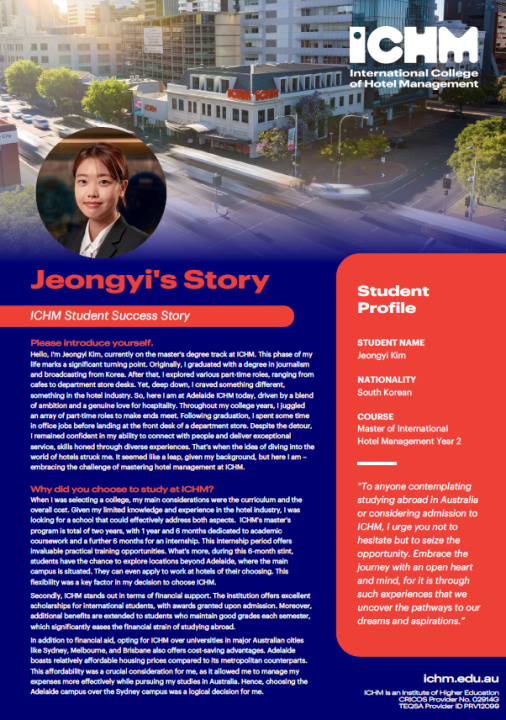 Jeongyi Kim – ICHM Student Testimonial