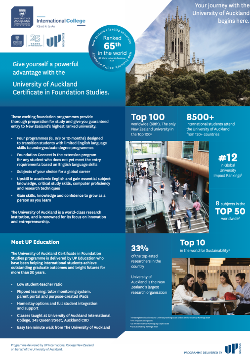 The University of Auckland Certificate in Foundation Studies Subject Selection Flyers