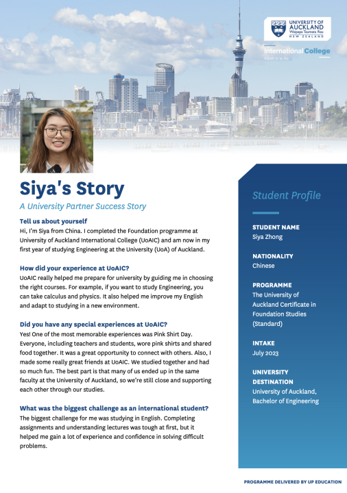 Siya from China | UoACFS Student Testimonial (+VIDEO LINK)