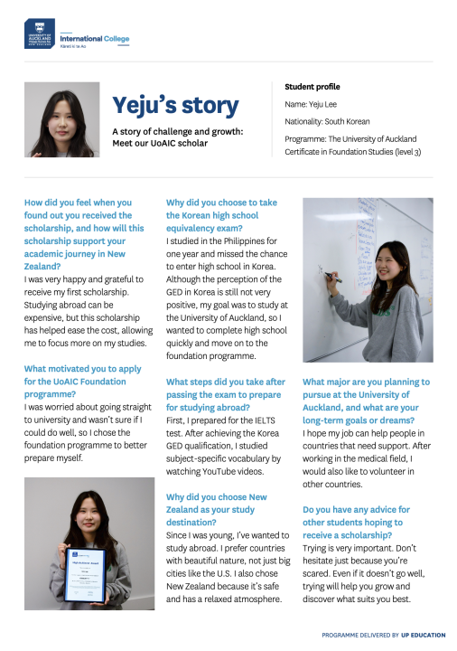 Yeju from South Korea | UoACFS Student Testimonial